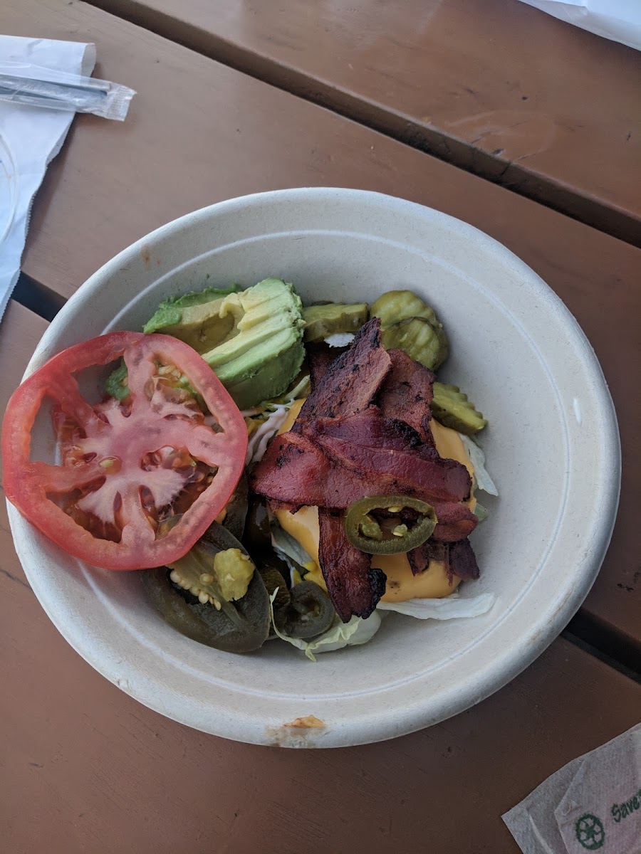 Cheeseburger and Fries Gluten-Free Bun Avocado Grilled Onions